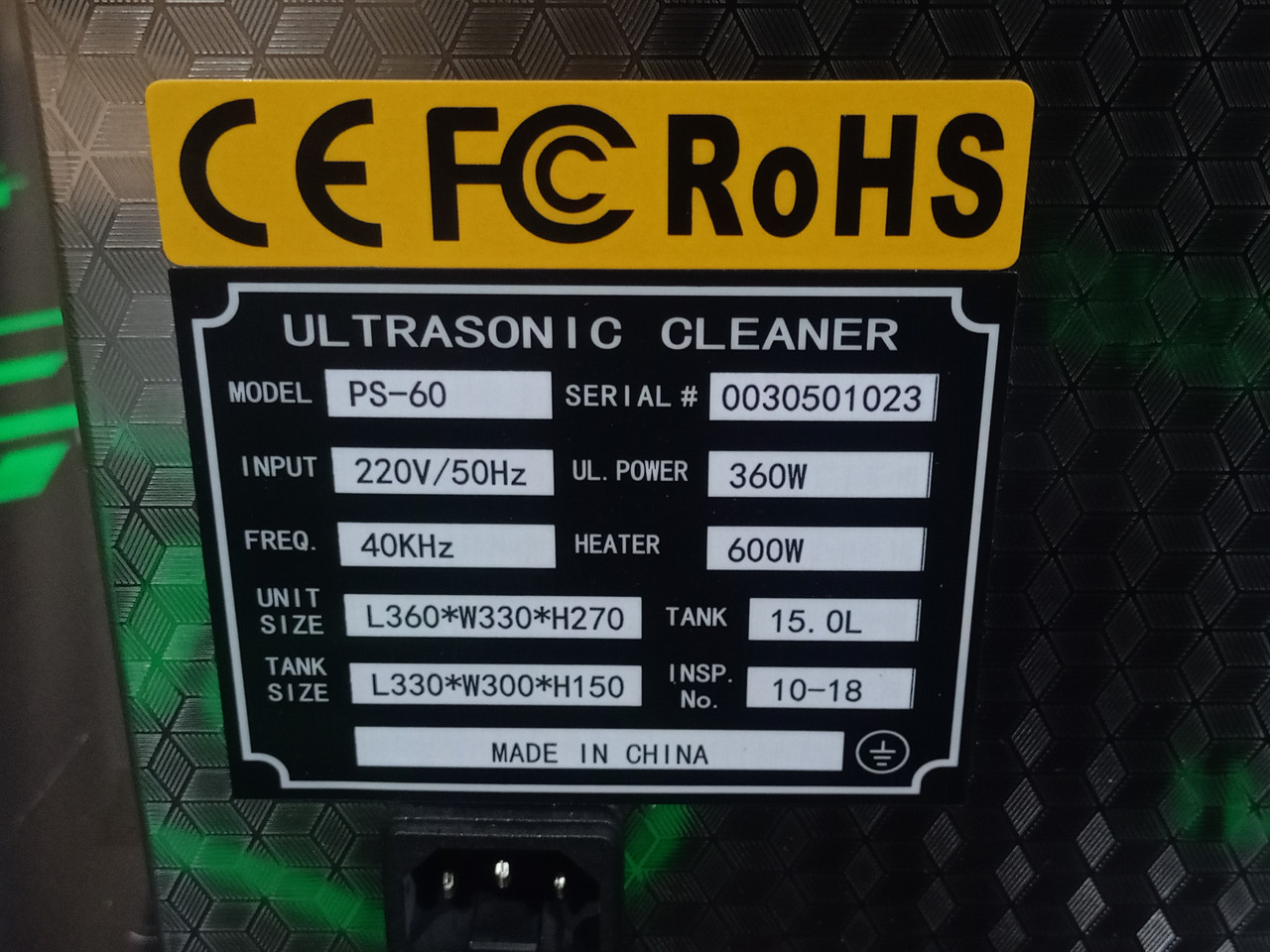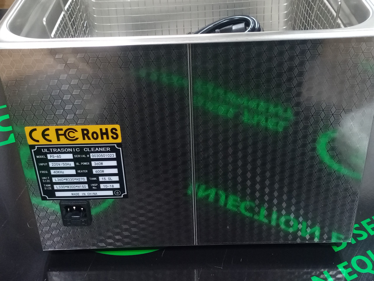 Технічні характеристики ультразвукової ванни роблять її придатною як для професійного, так і для домашнього застосування. Максимальна ультразвукова частота становить 40 000 Hz. Резервуар виготовлений із нержавіючої сталі SUS304. Саме цей матеріал знайшов широке застосування в медицині і харчовій промисловості. Об'єм резервуара становить 15000 мл. ви можете Встановити таймер на час від 1-30 хвилин, за допомогою кнопок на панелі.